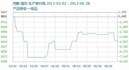 在大宗商品市場行情不景氣的狀態(tài)下,丙酮七月價(jià)格繼續(xù)下行。