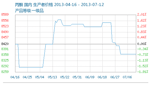 上周丙酮出廠價格穩定在穩定在8361.67元/噸。目前江蘇地區丙酮市場意向在8350-8400元/噸,寧波地區參考價在8300-8350元/噸,下游需求有限,工廠小單采購維持生產,買家接貨意向不濃,成交量少。