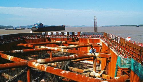 據悉,望東長江公路大橋北主墩承臺,是大橋主體工程中最為重要的部分之一。北主墩承臺采用大體積混凝土施工,分三層施工,共有8米厚, 8千多方混凝土。截至2013年7月上旬,望東長江公路大橋項目累計完成投資8.2億元,占工程總投資的16.28%。