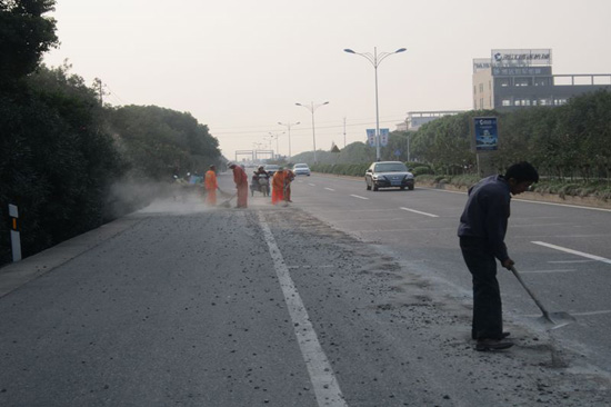 經了解,由于運送混凝土拌料的車輛駕駛員的操作失誤,在途中竟將裝滿拌料的筒體的送料口打開,故而造成大量的混凝土漏灑在公路上。滿地的混凝土料,不僅使公路受污,也給車輛的安全行駛造成嚴重影響。巡查人員立即與混凝土運送單位取得聯系。在混過凝土運送單位的幾位工人的配合下,經過近1個小時的清掃,養護工人將路面的混凝土拌料全部清理干凈,道路又恢復整潔通暢。