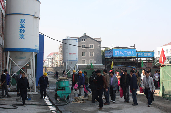 杭州市散墻辦主任常景輝,市發改局副局長裘一平、住建局副局長劉玨良、建管科科長周榮祥、質檢站站長張政、 散裝辦主任詹亞宏出席開幕式。大會由裘一平主持,常景輝和劉玨良分別致詞和講話。富陽雙龍砂漿企業負責人代表砂漿企業介紹預拌砂漿產品與質量,富陽復潤置業有限公司負責人現身說法,介紹使用預拌砂漿的經驗與體會。杭州地區各散、墻辦主任、市有關部門、全市150余家建筑企業負責人、富陽日報、富陽電視臺共190余人參加了本次活動,共同見證和分享了富陽發展預拌砂漿使用新工藝、新設備、新技術所帶來的好處和實惠。