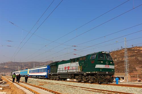 12月17日,在新建成的陜西西安至甘肅平涼電氣化鐵路陜西彬縣西站,一列電氣化鐵路檢測車對軌道、接觸網狀態、通信信號系統等進行帶電熱滑和動態檢測試驗。 當日,由中鐵電氣化局西安電化公司承建的西平電氣化鐵路進入電力機車試跑階段。西安至平涼電氣化鐵路正線全長263.1公里,是國家“十一五”規劃建設的鐵路項目之一,計劃今年年底建成通車。屆時,從古都西安到崆峒山所在地甘肅平涼僅需3個小時。