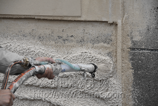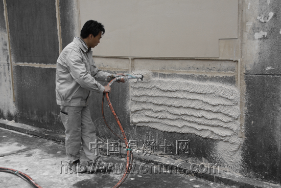 在觀摩會現場,上海城建工作人員現場展示了新型保溫產品的噴射與平鋪,新型脫硫石膏凝結速度快,石膏基保溫砂漿施工性能較好。據施工作人員反映,砂漿上墻后在4小時內凝結硬化,縮短了施工周期。強度適中,砂漿與基層粘結牢固。表面無開裂現象、不收縮,整體效果好。