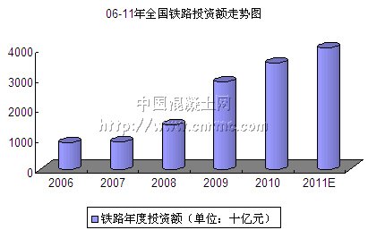06-10年,鐵路投資額漲幅非常明顯,但在今年初,由于鐵道部內部暴露出的人士問題,以及近期各相關行業鏈資金的問題,導致近期高鐵建設的速度有所放緩,但按照鐵道部前不久提出的十二五規劃中所指出的,高鐵項目總的建設進度將不變,所以說今后五年,相關項目的建設依然存在,只是對企業來講,競爭將更趨激烈。