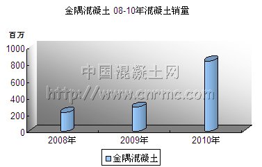 從上表不難看出,企業(yè)在08-10年的這三年中混凝土銷量一直保持著增長的趨勢,而在10年,金隅混凝土全體員工通過共同努力,當年公司更是實現(xiàn)混凝土總銷量842萬立方米,較09年相比上漲190.34%。