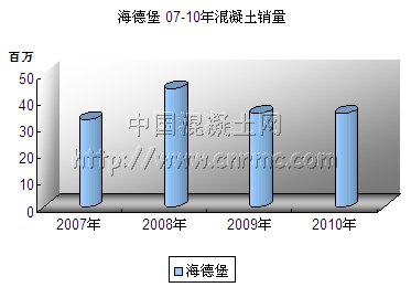 2010年公司銷售預(yù)拌混凝土3500萬立方米。業(yè)務(wù)拓展到全世界50多個國家,擁有雇員42000名。