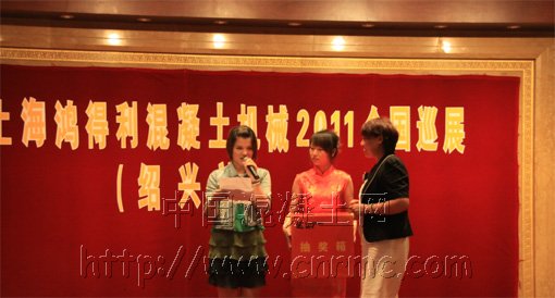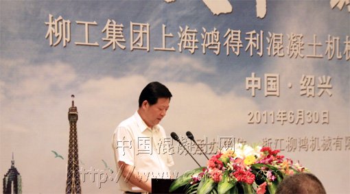 在紹興國際大酒店3樓的會議廳里,紹興市建設局、紹興混凝土協會領導以及當地的混凝土攪拌站生產企業代表和柳工鴻得利產品客戶齊聚一堂。下午3時會議準時開始,會議首先由紹興市建管局副局長潘培富和紹興市混凝土協會會長謝寶金發言,在發言過程中,兩位領導首先感謝柳工鴻得利給當地所做的貢獻,并預祝此次柳工集團上海鴻得利重工的紹興巡展能夠獲得圓滿成功,同時預祝柳工集團上海鴻得利重工的事業能夠蒸蒸日上。