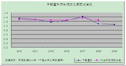 資本結構方面,2007年以前中聯重科的資產負債率一直處于60%以下的健康水平,與行業平均水平相當。08、09年,隨著公司經營規模的不斷擴大,其資產負債率連續兩年接近80%,存在一定償債風險。今年一季度,公司通過定向增發2.98億元,導致一季度資產負債率大幅下降,3月末降到68.13%。公司歷年資產負債率變化情況,如下圖所示: