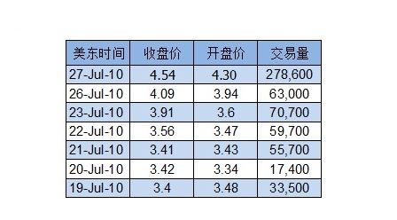 北京時間10月28日,中國建筑材料供應商——新奧混凝土(CADC,4.54,+6.07%)近日股價不斷走高。周三收盤再漲6.07%,報4.54美元,創6個月來新高;成交量明顯放大,達到27.86萬股。