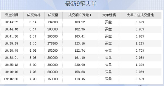 據(jù)同花順數(shù)據(jù)中心統(tǒng)計,截止01月22日午盤,金隅股份8.05元,漲跌幅2.29% ,換手率為1.70% ,流入資金9718.17萬元,流出資金7534.83萬元,資金凈額為2183.34萬元,金隅股份發(fā)生9筆大單(成交額大于等于100萬)交易,9筆為買盤,流入資金1459.81萬元。