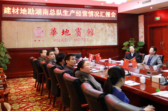 2月26日,中材集團副總經理李建倫到湖南總隊調研,實地檢查指導工作并召開了座談會,聽取湖南總隊生產經營情況匯報。集團地勘事業部部長曹蘇揚陪同調研??傟狀I導班子成員、辦公室主任、工會負責人出席了座談會。