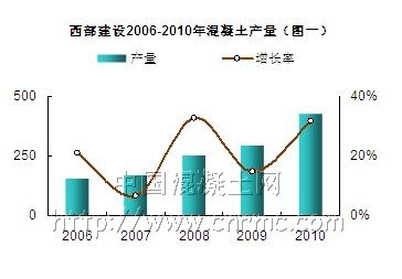 看到公司從2006年至2010年混凝土產量每年處于上漲態勢。特別是2009年公司募集資金5.25億元,公司新增預拌混凝土生產網點5處,同年公司混凝土產量達到294萬立方米,實現凈利潤7929萬元,同比增長22%。2010年新疆地區預拌混凝土企業得到了快速發展。據統計,截至2010年底,全區共有混凝土生產企業85家,同比去年增加了25家;現有設計生產能力達7000萬立方米,同比去年增長了2870萬立方米;2010年全年預拌混凝土產量達1596萬立方米,同比去年增長了564萬立方米,增幅達54.7%。西部建設也再接再厲,依托募集到資金近1.36億元,使用超募資金2800.00萬元對阜康市西部建設有限責任公司追加投資。同時公司伊寧攪拌站和米東區攪拌站的建設項目也建成投產。同年公司混凝土產量已超越400萬方,利潤總額1.32億元,較上年同期增長25.85%。公司還找準時機,就針對南北疆的商品混凝土市場需求的快速增長,在喀什、和靜、焉耆、博湖等地進行了生產網點的布局,并在跟蹤大型工程項目方面,機動靈活地采取“以固定站點為依托,以移動站點為重要補充”的經營策略,擴大疆內市場。