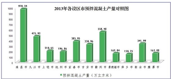 (一)產業持續快速發展。一是縣域預拌混凝土產業發展帶動全省預拌混凝土產業快速發展。截止2013年底,46 個縣(市)出臺混凝土“禁現” 政策, 80個縣(市)建立預拌混凝土企業,建站率達到98.77%;預拌混凝土企業達到156家,新增企業36家,產能達到9835萬立方米,同比增加3000萬立方米,實際產量達到1421.67萬立方米,同比增長85.29%,占全省預拌混凝土產量35.93%。二是預拌砂漿產業持續快速推進。2013年全省6個設區市新批建預拌砂漿企業6家,目前正在建設中;九江市出臺砂漿禁現政策,1家預拌砂漿生產企業建成投產,取得零的突破;南昌市、新余市砂漿禁現范圍內,預拌砂漿使用率分別達到46%、20%,分別提高6、8個百分點。