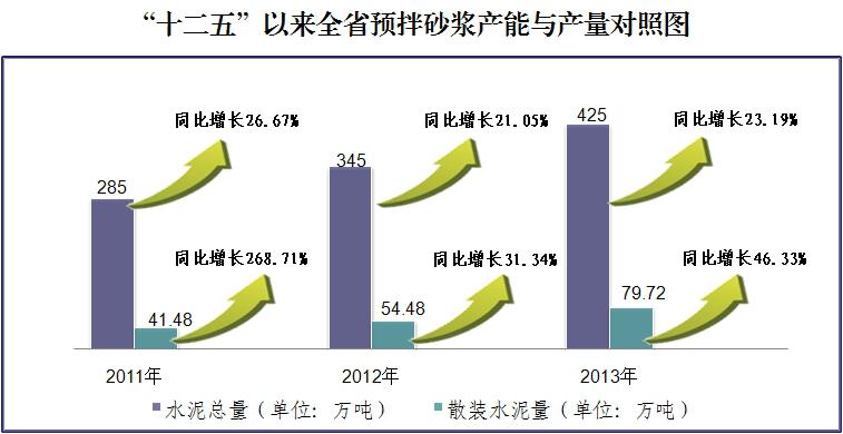(三)預拌砂漿。預計2014年全省建成投產預拌砂漿生產企業達到15家,設計生產能力達到530萬噸,供應量達到100萬噸,同比增長25%。