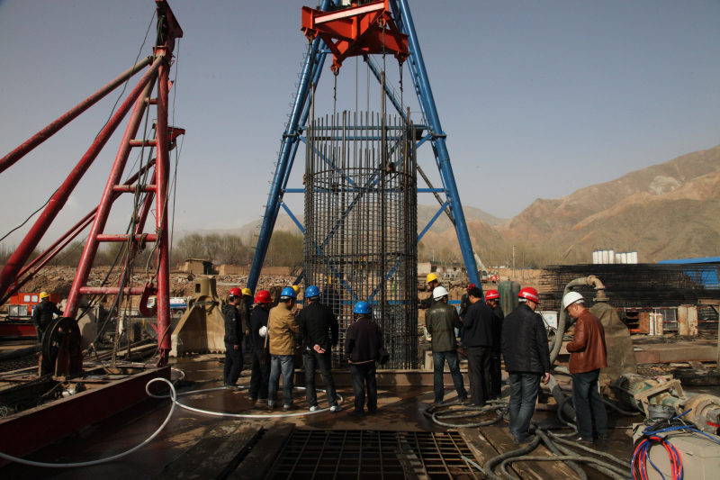 哇加灘黃河特大橋是通往黃南藏族自治州的牙什尕至同仁高速公路上的主要工程之一,主橋全長1000米、主跨560米、寬28米、主塔最高達193.6米,約65層樓高。該工程自去年9月開工以來,擔(dān)任施工任務(wù)的中交第二公路工程局抽調(diào)60多名骨干工程技術(shù)人員,晝夜施工搶進度,一絲不茍抓質(zhì)量,克服了高海拔、高寒、深水基礎(chǔ)作業(yè)和南岸不通交通,機械設(shè)備、材料、人員到達困難等重重困難,先后完成了長512米, 寬8米的施工浮橋架設(shè)和主墩水上施工平臺搭建等工作,并于今年3月初開始了全部48根樁徑2.8米、深度分別為50米和62米鉆孔樁的施工。 3月28日,在完成第一根樁基的鉆孔和鋼筋籠的下放后,又通宵達旦開始吊裝儲料罐、安裝導(dǎo)管,為澆筑混凝土做準備。