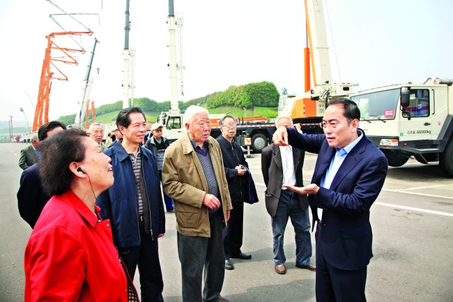 老干部一行先后參觀了麓谷工業園產品展示坪、混凝土機械裝配車間與工程機械展館。在產品展示坪,詹純新董事長向老干部一行詳細介紹了中聯重科的混凝土機械、起重機械、土方機械、環衛機械等現有主打產品,同時表示,中聯重科在繼續做強工程機械板塊的同時,將著力發展環境產業、農業機械、重卡和金融四大板塊。當老干部們了解到農業機械是中聯重科未來發展的重要板塊時,非常認同。他們表示,湖南作為農業大省,其高端農機產品很多都來自日本、美國,國內農機行業的發展非常需要中聯重科這樣的企業。