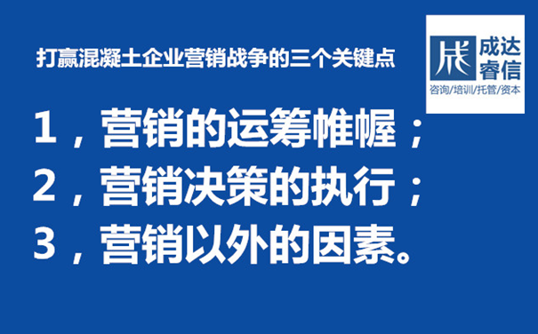 【營(yíng)銷的運(yùn)籌帷幄】對(duì)于混凝土企業(yè)而言,營(yíng)銷戰(zhàn)爭(zhēng)的運(yùn)籌帷幄到底都包含哪些內(nèi)容?營(yíng)銷決策團(tuán)隊(duì)到底應(yīng)該怎么做,才不至于因?yàn)闋I(yíng)銷決策的失敗導(dǎo)致整個(gè)營(yíng)銷戰(zhàn)爭(zhēng)的失敗?