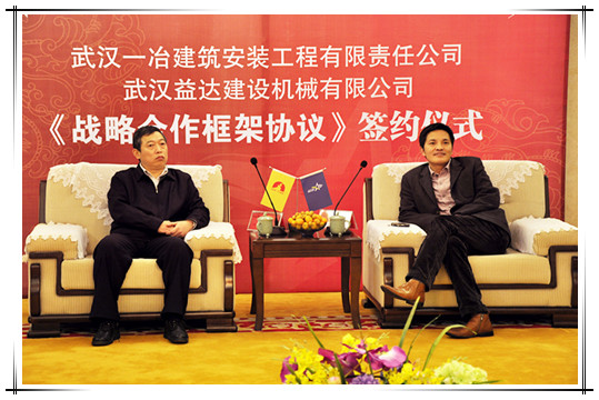 武漢一冶建筑安裝工程有限責任公司與武漢益達建設機械有限公司戰略合作框架協議簽約儀式在道遠科技園貴賓室隆重召開。武漢一冶建筑安裝工程有限責任公司總經理蔡曉波、武漢益達建設機械有限公司總經理卿建輝等領導出席了儀式并發表講話。據協議,雙方本著友好合作,互利互惠,共同發展的原則,經友好協商達成塔吊租賃和混凝土設備租賃的戰略合作伙伴協議。
