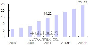 中國城市化進程建設的進一步深化,未來預拌商品混凝土的發展空間最少還要增長一倍,增長潛力主要來自于中西部相對發展較晚的地區,這也是減水劑增長潛力最大的地區!