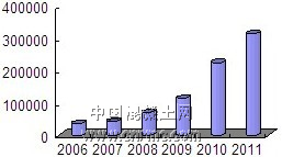 2008-2011年公司產(chǎn)量增長(zhǎng)情況(萬(wàn)方) 2006-2011年公司銷(xiāo)售收入增長(zhǎng)情況(萬(wàn)元)