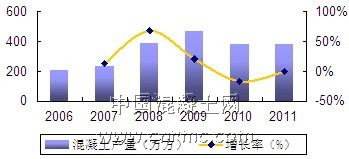 2008-2011年北京金隅混凝土產(chǎn)量增長(zhǎng)變化情況