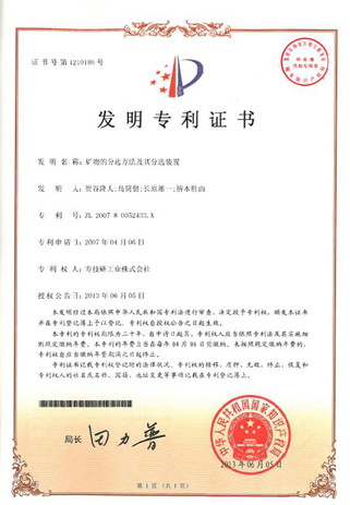 南方路機V7干式制砂設備空氣篩發明專利證書: