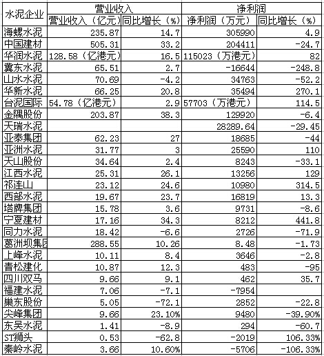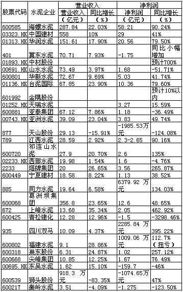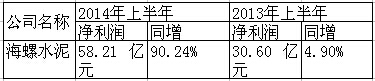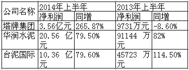 8月7日,寧夏建材率先發布2014年中報,營業收入18.58億元,歸屬于母公司所有者凈利潤11376.34萬元。1-6月公司實際生產水泥660.23萬噸,銷售水泥625.35萬噸,完成計劃的47.02%;產銷商品混凝土113.66萬方,完成計劃的38.92%。當天,亞洲水泥(中國)也公布截至6月底止中期業績,營業額39.09億元,同增23.04%;純利3.83億元,同增49.74%。期內,水泥與熟料合共銷量1343萬噸,同增14%。主因水泥產品銷量及平均售價上升以及煤炭成本下降。