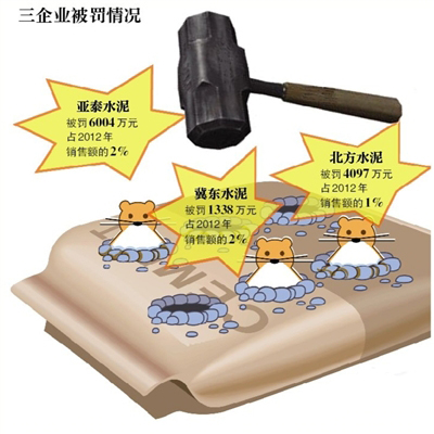 發改委稱,考慮到我國水泥產能過剩的情況,上述三家公司達成并實施價格壟斷協議持續的時間不長,對市場競爭的損害限于一定的區域范圍。據此,對不積極配合調查的亞泰公司、冀東公司處以2012年度銷售額2%的罰款,分別計6004萬元和1338萬元。對能夠配合調查并積極整改的北方公司處以2012年度銷售額1%的罰款,計4097萬元。
