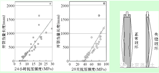 3.凡是提高早期強度的措施對混凝土后期性能都會有損害,這已是國內(nèi)外專家的共識[1] [2]。前RILEM主席、德國混凝土專家Rupert Springenschmid證明控制混凝土12小時抗壓強度不超過6MPa,就可以避免混凝土的早期開裂[3];我國混凝土專家黃士元經(jīng)過試驗得出結(jié)論:可用混凝土24小時抗壓強度不超過12MPa來控制混凝土的早期開裂。(見圖4)