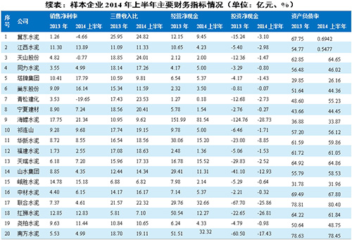 從營業收入來看,2014年上半年樣本企業實現營業收入共計1,190.46億元,同比增長13.68%,但受2季度以來市場需求下降影響,增速較去年同期下降3.13個百分點。各區域受市場供需結構及價格影響,企業營業呈現不同增速水平,其中中南、華東地區的塔牌集團、巢東股份、海螺(275.71,0.07%)水泥、福建水泥受區域需求好及價格同比高影響,上半年營收同比增速均在20%以上,1季度營收同比下降的峨勝水泥在2季度營收大漲,上半年營業收入同比增長6.22%;上半年營收同比下降的企業僅天山股份一家。