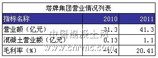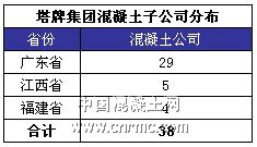 2011年全年實(shí)現(xiàn)混凝土產(chǎn)銷41.69萬(wàn)方、營(yíng)業(yè)收入11418.03萬(wàn)元;集團(tuán)混凝土子公司已達(dá)到38個(gè),同時(shí)公司參股的合營(yíng)攪拌站也已達(dá)28個(gè),主要分布在廣東、江西、福建等地,其中以廣東為主要發(fā)展地區(qū)。混凝土攪拌站在鞏固公司水泥銷售和穩(wěn)定水泥價(jià)格方面的協(xié)同作用初見(jiàn)成效。