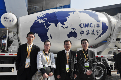 中集凌宇市場(chǎng)部常國(guó)強(qiáng)經(jīng)理(右二)和中國(guó)混凝土網(wǎng)記者合影留念