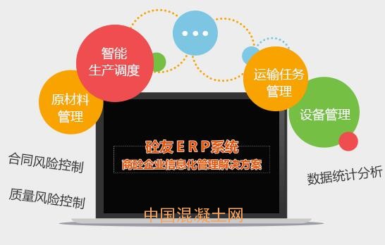 砼友ERP系統致力于提高商砼企業信息化建設與管理水平,降低企業運營成本。系統通過數據分析提供企業各部門決策依據,解決管理中存在的各類痛點,通過優化攪拌站運營管理流程,控制經營風險的方式,實現了智能生產調度、運輸任務管理、原材料管理、設備管理、合同風險控制、質量風險控制、數據統計分析等眾多的解決方案。