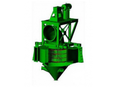選粉機出風彎管接收塵器的進風口,由于收塵器風機的抽風作用,空氣經選粉機一、二次風口吸入選粉渦流殼內,在導風葉的導流、轉子的旋轉和固定緩沖板的作用下,在導風葉和轉子之間形成穩定的環形水平渦流選粉區。粉磨后的物料從選粉機進料口喂入,通過旋轉的撒料盤均勻撒向四周,因擋料圈的阻擋作用,物料在分散狀態下撒落在導風葉和轉子之間的選粉區。在選粉渦流中運動的粉塵顆粒將同時受重力、風力和旋轉離心力的作用,細小輕微的顆粒隨氣流被吸入轉子內部,經出風口由收塵器收集成為成品;粗重顆粒則下落,最終被收集到下錐體的粗粉出口,返回到磨機再磨,從而形成閉路系統。改變轉子轉速可有效調節成品細度。