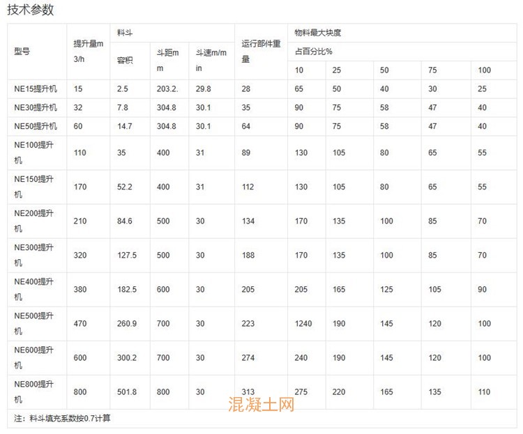 7.輸送能力大,該系列提升機具有NE15~NE800多種規格。提升量范圍為15~800m3/h。