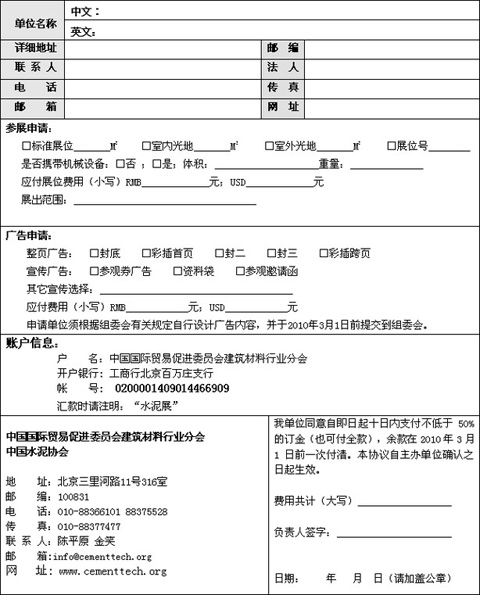 第十一屆中國國際泥技術(shù)及裝備展覽會申請表