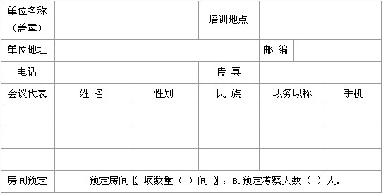 為保證培訓效果,本期培訓名額將有限制,需要培訓者請速報名,填寫回執并郵寄或傳真回執(報到時按回執接待)至會務組,以便安排好學員的食宿。報名截至日期報到前一周,會議接待以代表報名回執為準。