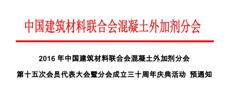 經分會理事會研究商定,分會定于2016年5月6日~8日在山東省青島市舉辦中國建筑材料聯合會混凝土外加劑分會第十五次會員代表大會暨分會成立三十周年慶典活動,會議由山東省建筑科學研究院承辦。“第六屆中國混凝土外加劑產品及設備展示會”與2016年“博特青島之夜”晚會同期舉辦(通知另附)。會議具體事宜通知如下: