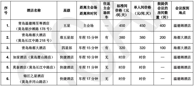 ?航班:代表可選擇航班至青島流亭國際機場,會議統(tǒng)一在機場安排免費接站至2個報到酒店(溫德姆酒店或海都酒店)。參會代表也可自行付費乘坐機場大巴或打車至這兩個酒店。