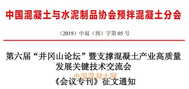 為更好的服務混凝土產業和推動混凝土產業高質量發展,實現混凝土產業高質量發展,中國混凝土與水泥制品協會預拌混凝土分會、江西省散裝水泥和預拌混凝土協會擬定于2019年6月28日-30日在江西省南昌市共同舉辦第六屆“井岡山論壇”暨支撐混凝土產業高質量發展關鍵技術交流會,交流會中將就混凝土原材料及資源綜合利用、混凝土配合比設計和先進生產工藝、混凝土施工技術以及混凝土工程質量管控等先進及關鍵技術展開研討,會議現征集會議論文編制會刊,同時開展優秀論文評選,獲評論文作者將得到證書和獎金獎勵,論文將被推薦到行業重點刊物刊登。