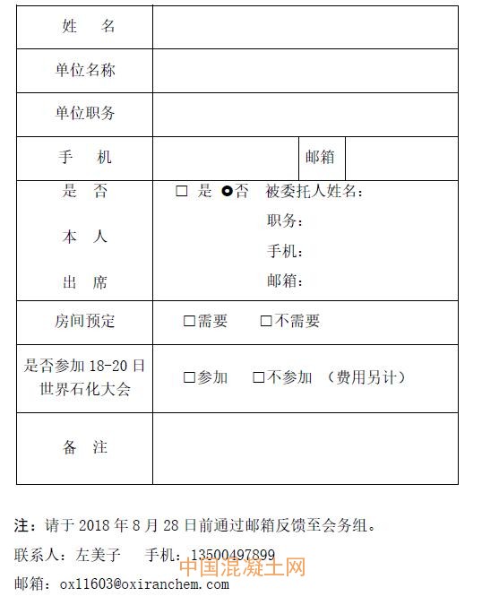 第三屆國際環氧乙烷精深加工產業高質量發展論壇參會回執
