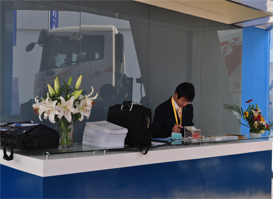 編者按: 本屆寶馬展中,中集凌宇公司展示了集瑞重卡底盤12方攪拌車、廣汽日野底盤10方攪拌車和鋁合金材質的液體半掛運輸車等。整個展示現場以純潔的白色和大海的藍色為主色調,勾勒出中集博大精深的工藝設計理念,也給現場的觀眾展示出一種優雅脫俗的企業特質。 |
